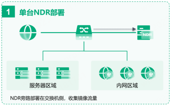 单台旁路部署在各企业内外网络出口核心交换机处,通过镜像口抓取进出口网络流量,检测对各企业内网发起的入侵攻击,定位出失陷主机。