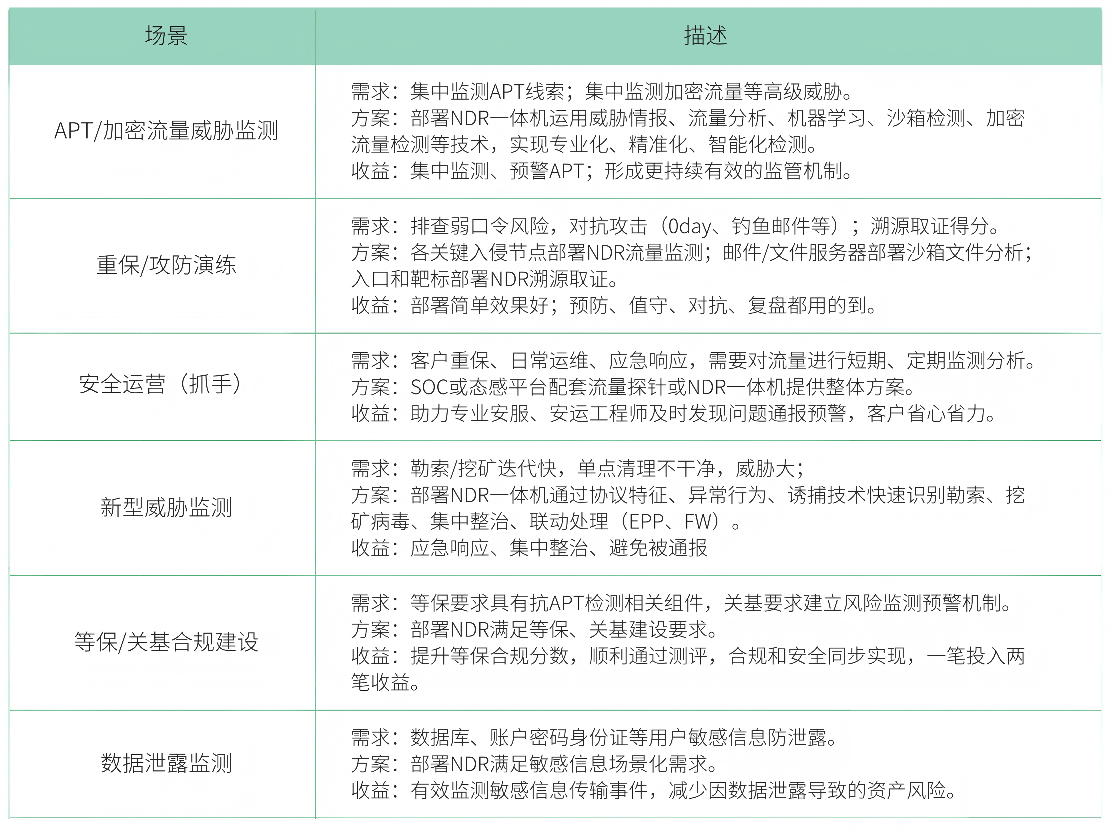 - 需强化APT识别、多产品联动告警、上下文关联分析、恶意文件检测,并与现有体系一体化运营。
